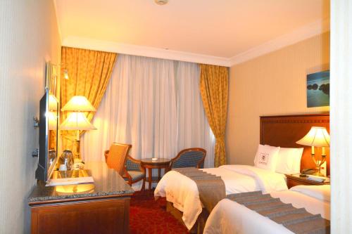 The elegant property of Al Jaad Madinah Hotel houses a classic executive king room, double room, triple room, and classic quadruple room. The hotel rooms come with modern decor and mahogany furnishing with golden details. Each room is well-equipped with an air-conditioner, room heating facilities, electronic safe, satellite television, and coffee maker. The guests are provided with 24-hour room service and concierge services on request. The hotel also offers laundry services and ironing facilities. The public areas and the property's guestrooms are provided with free high-speed internet services.